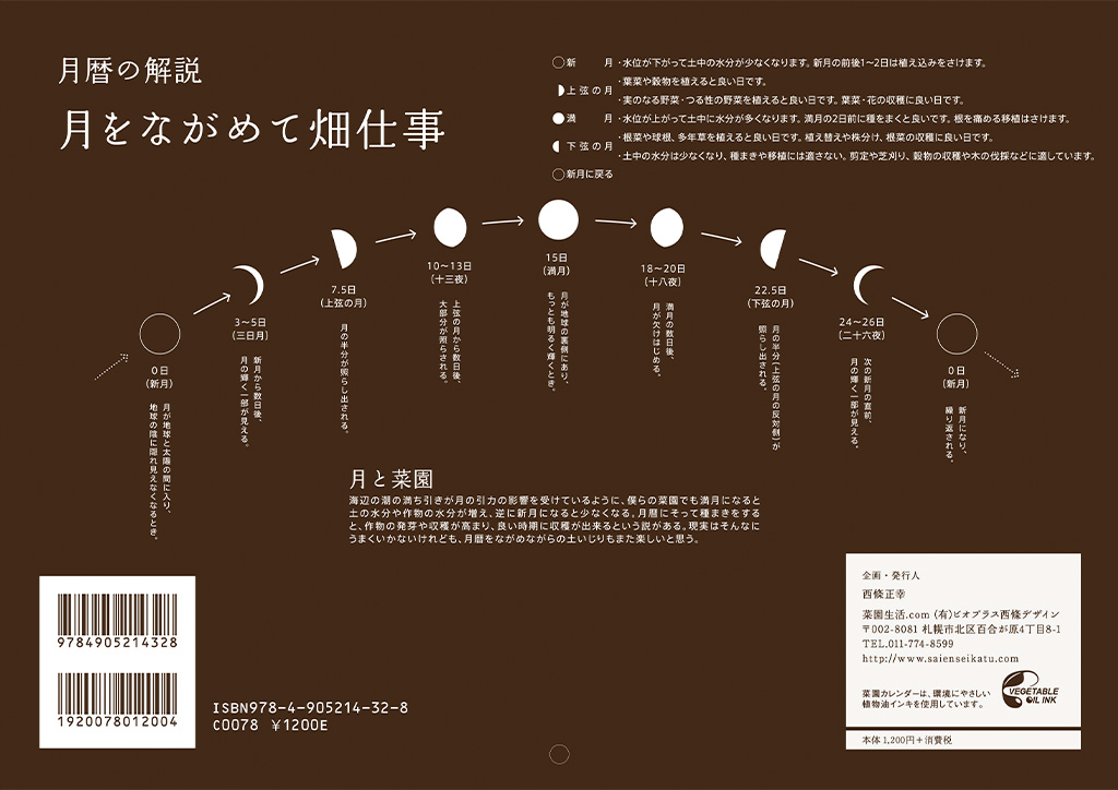 自然栽培や有機栽培など自然派家庭菜園オタクのためのイッピン! 月をながめて畑仕事を楽しむ。植物の相性を考えて畑づくり。 使い方いろいろ、たっぷり書き込みタイプのファーマーご用達カレンダーなのです。
